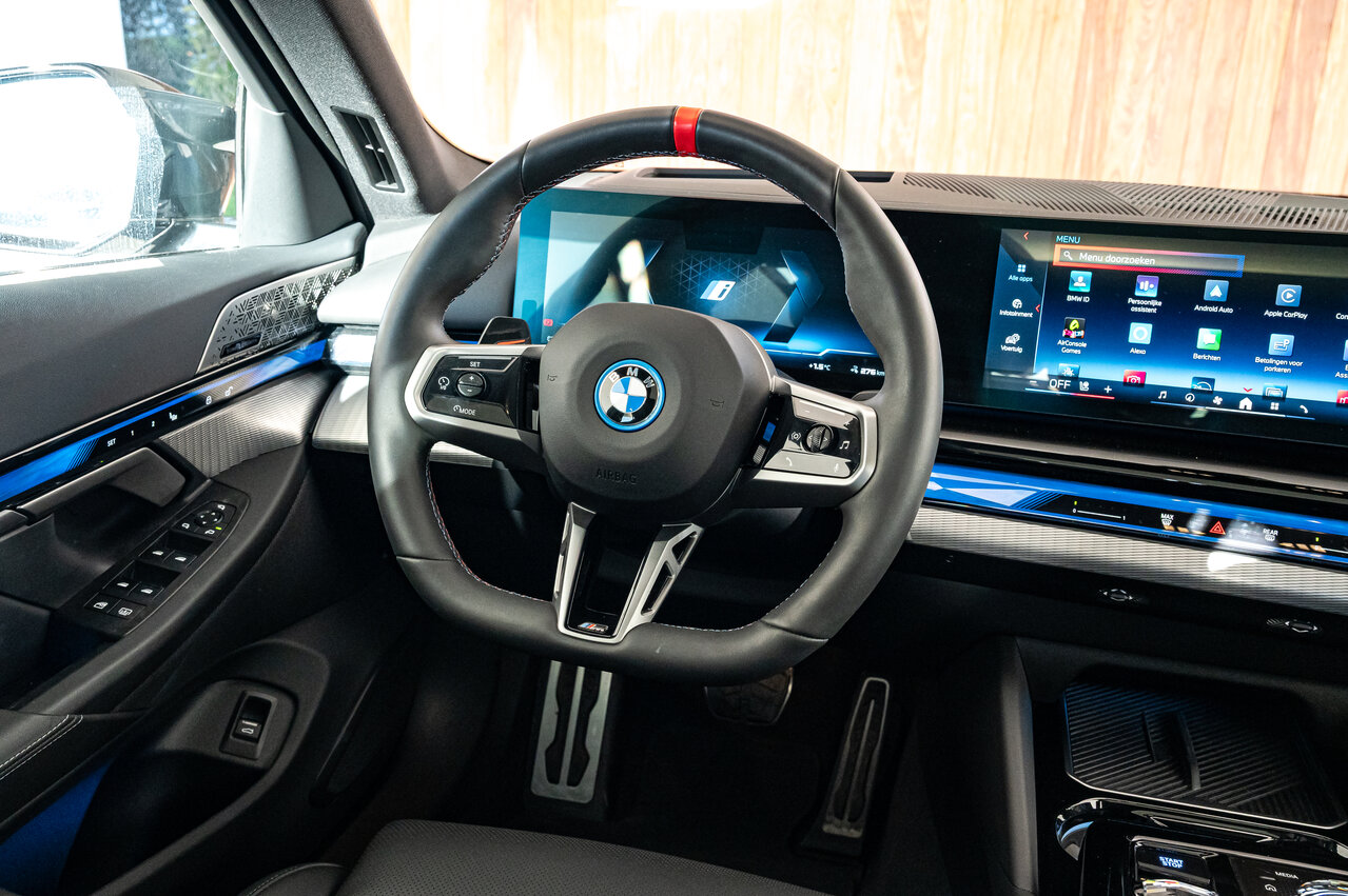 Dit topmodel is rijkelijk uitgerust met hoogwaardige opties die elke rit tot een genot maken. Geniet van het daglicht en de ruimte dankzij het prachtige **panoramisch dak**, terwijl een geavanceerde **head-up display** alle belangrijke informatie direct in uw gezichtsveld projecteert. Het comfort is ongeëvenaard met zowel **zetelverwarming én -ventilatie voorin**, aangevuld met **zetelverwarming achterin**, en een **elektrische zetelverstelling met geheugenfunctie** voor uw persoonlijke comfort. De **automatische klimaatregeling met 4 zones** zorgt voor een perfecte temperatuur voor elke passagier. Manoeuvreren wordt een fluitje van een cent dankzij de **360° camera en automatische parkeerhulp**, en voor de ultieme praktische bruikbaarheid beschikt deze i5 zelfs over een **vaste trekhaak**. Mis deze kans niet om eigenaar te worden van een nagenoeg nieuwe, krachtige en luxueus uitgeruste elektrische BMW die klaar is voor de toekomst.